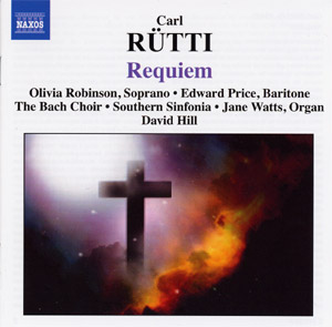 Trained as a pianist and organist, the Swiss-born Carl Rütti spent a student period in England where his interest in the qualities of British choral singing was awakened. The result has been an impressive list of works that are as rewarding to the performer as they are to the listener. The Requiem came as a result of a commission from The Bach Choir and was completed in 2007. It is in the seven conventional sections, using strings, harp and organ as the accompaniment—the same as used by Fauré in his Requiem. But Rütti often speaks in dramatic tones, with dissonances giving the strings a powerful presence that is then supplemented at key moments by the power of the organ. The long Offertorium is a particularly impressive section, while he oft uses the long floating high passages we find in John Tavener’s works. You will also enjoy those moments when he uses the strings to produce totally fresh sounds as in the Benedictus. The performance conducted by David Hill is given by much the same forces as those responsible for its premiere in February 2008, the singing having that mark of familiarity. Good sound.